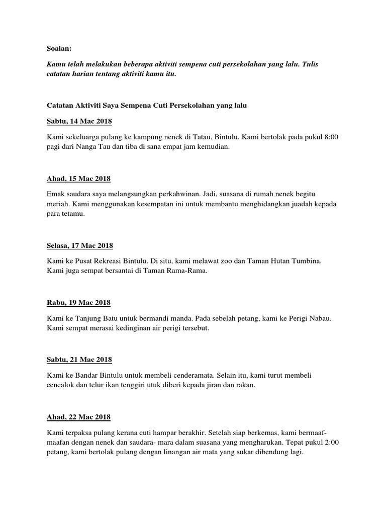 CATATAN HARIAN Add to my workbooks 1 Download file pdf Embed in my website or blog Add to Google Classroom Add to Microsoft Teams Share through Whatsapp. Kami sampai di Stesen Sentral Kuala Lumpur. Bahasa Melayu BM Gradelevel.